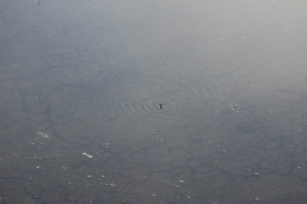 水が入った田圃で、何かが泳いでいます。
